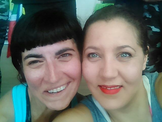 Cindy looks flawless while I look like a sweaty mess…